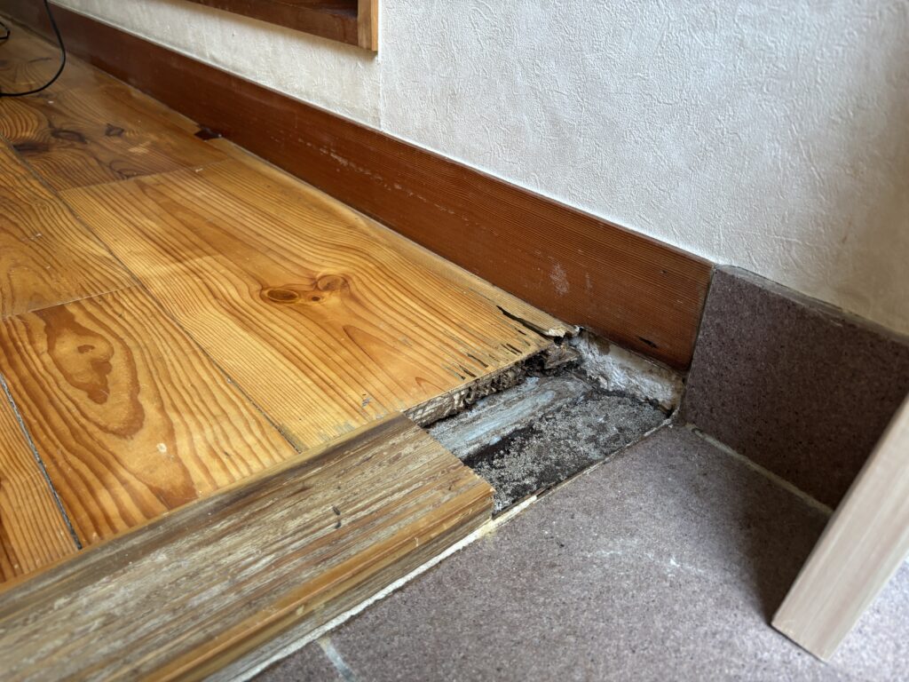 今回の玄関框はシロアリの侵入によてボロボロになっていました。
