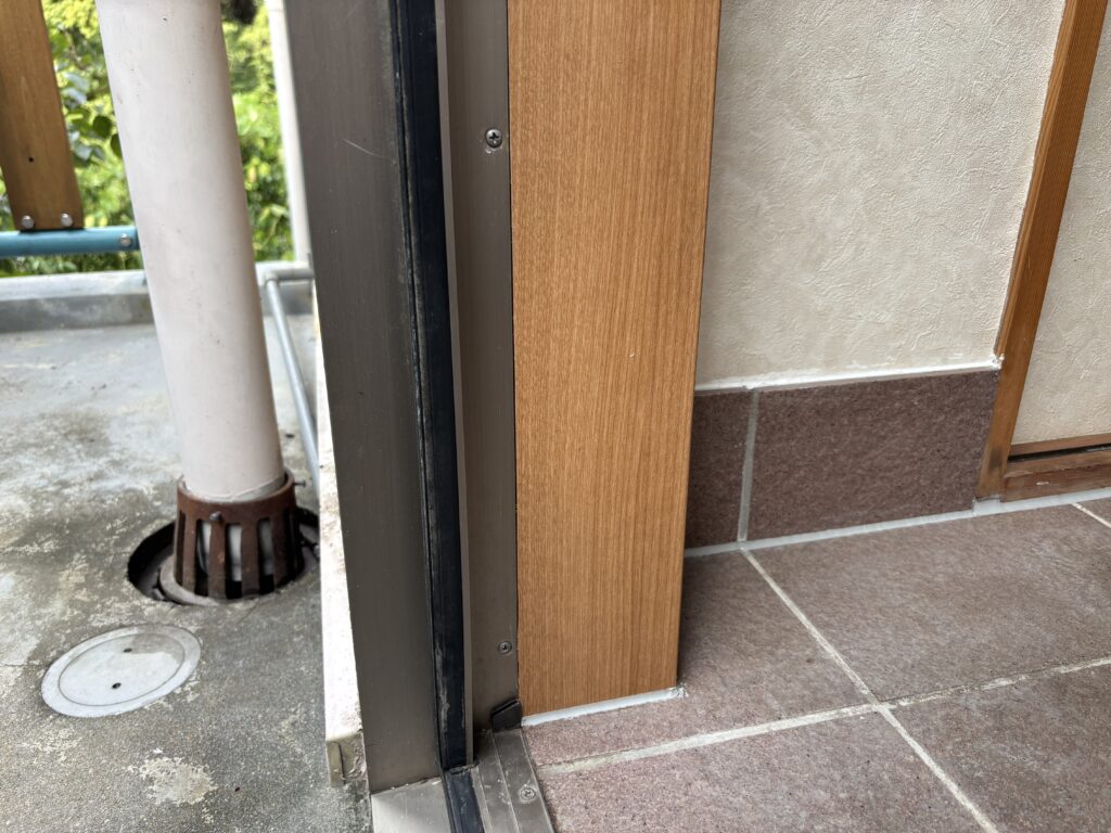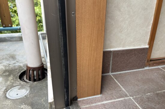 既存の框を撤去し、シロアリ駆除剤をまいた後新たに框を取り付けました。