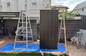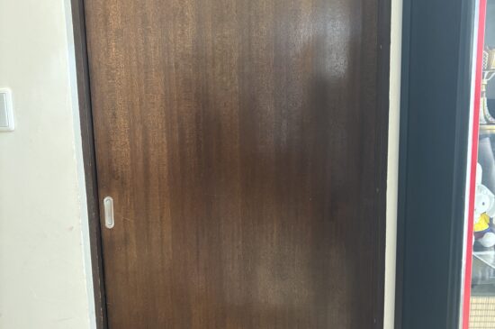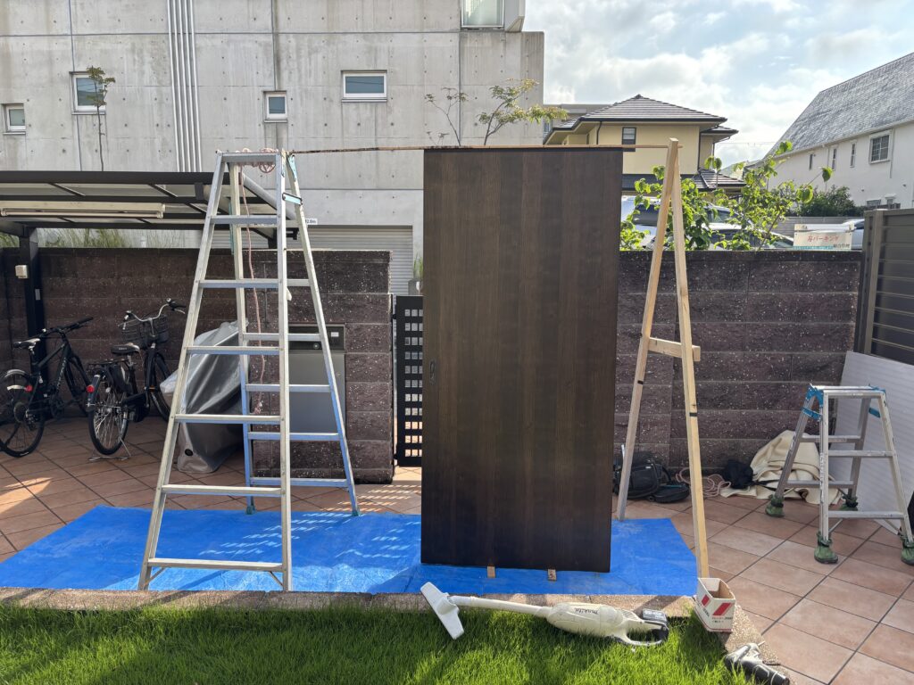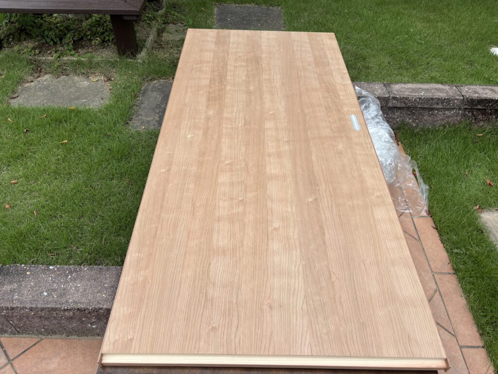 通常なら穴の開いたドアにシートを張るなどして補修するのですが、今回はお施主様の要望でドアを作り替えました。